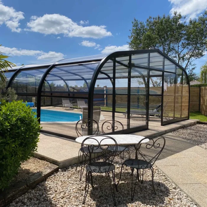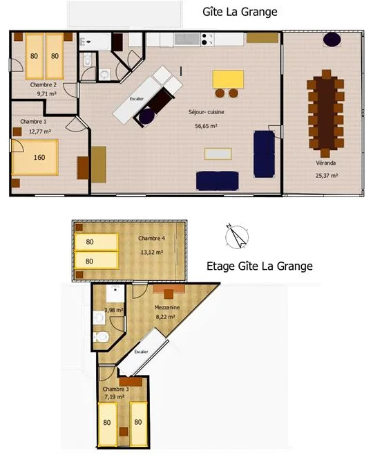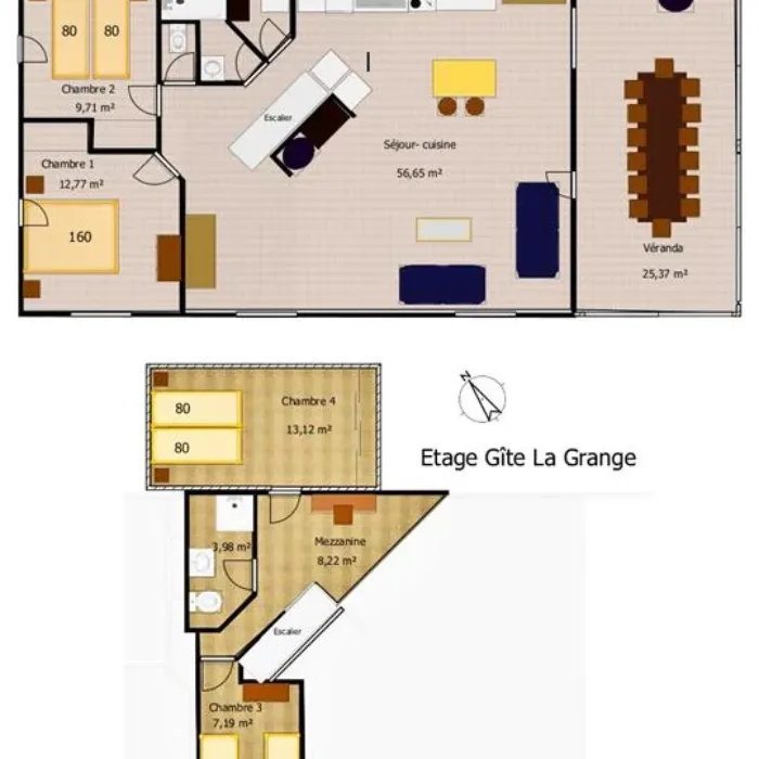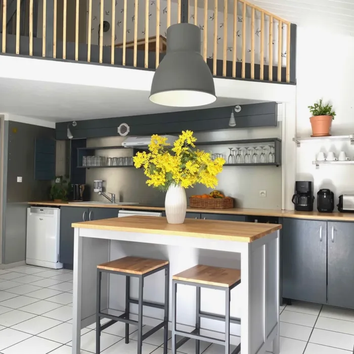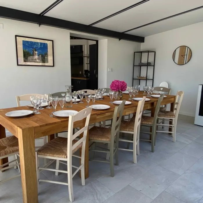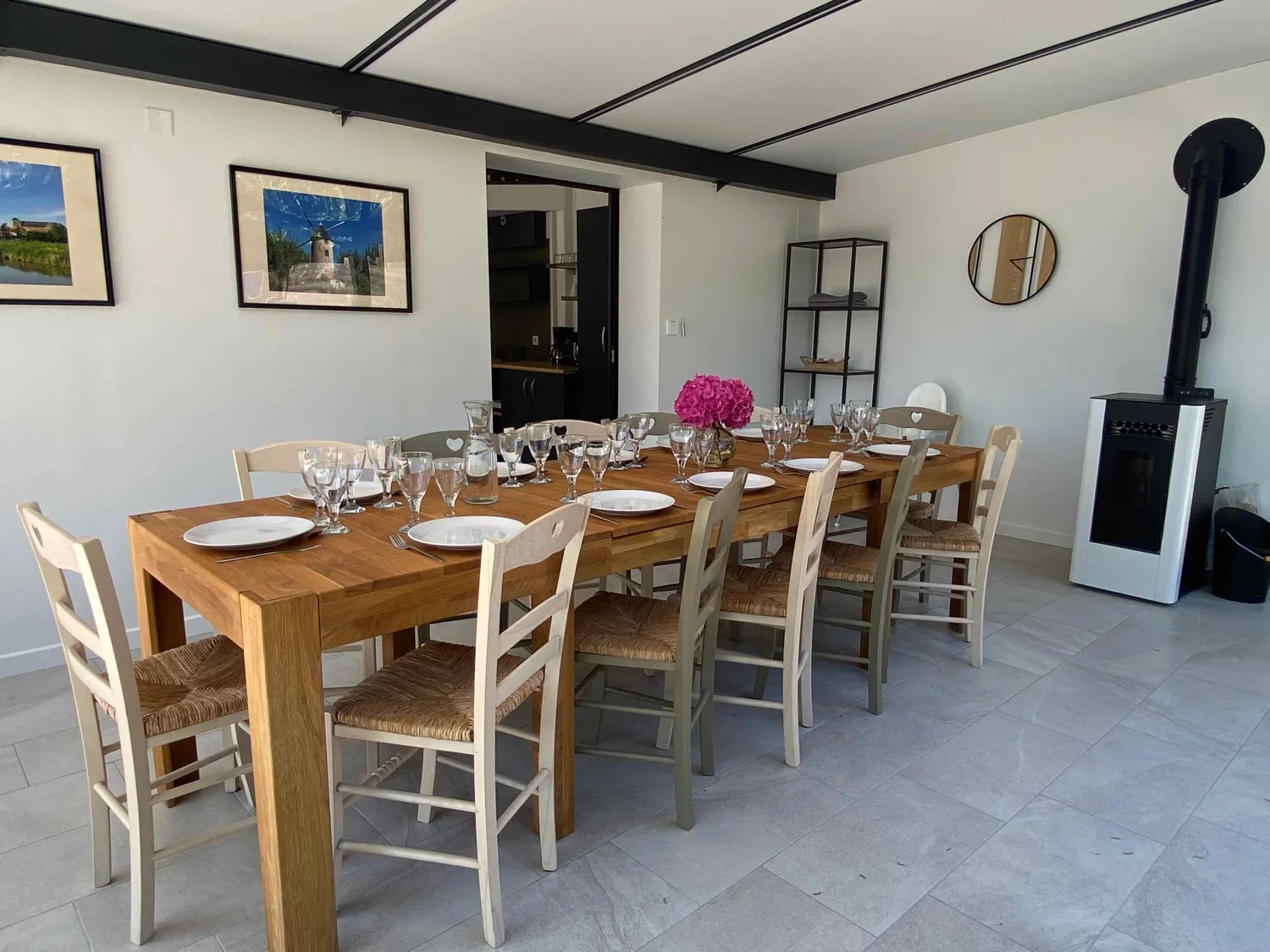 La Grange est un hébergement au confort moderne de 135 m2 classé 4*. Ce gîte dispose d’une pièce de vie avec plafond cathédrale, poêle à bois et cuisine ouverte. L’espace repas situé dans la véranda est adapté pour 12 personnes à table. Son jardin de 500 m2 avec terrasse et pergola est arboré et entièrement clôturé. La piscine privée de 7,5m x 3,8m est couverte et chauffée d’avril à octobre. Ce gîte comporte 4 chambres doubles dont 2 mansardées à l’étage.