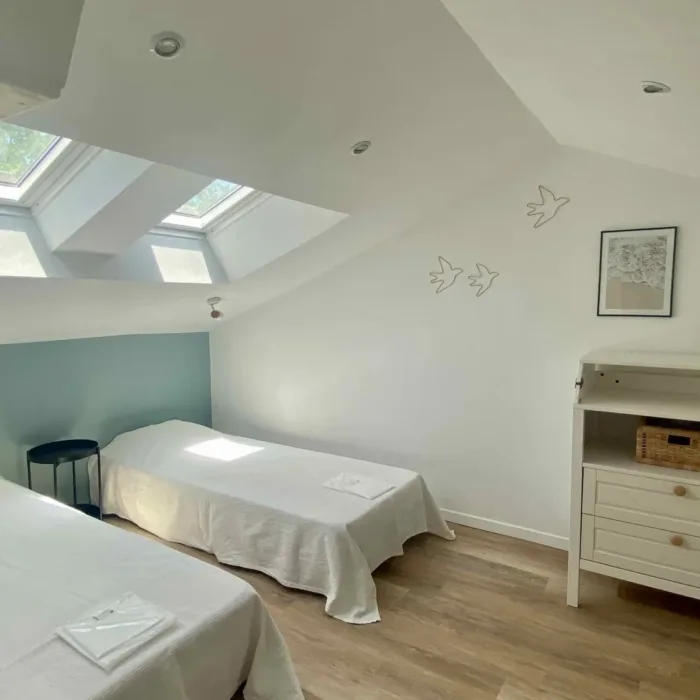♦ 6 chambres doubles : 4 à la Grange (1 lit double de 160cm et 6 lits simples dont 1 lit cabane) – 2 à la Longère (1 lit double de 160cm et 2 lits simples)